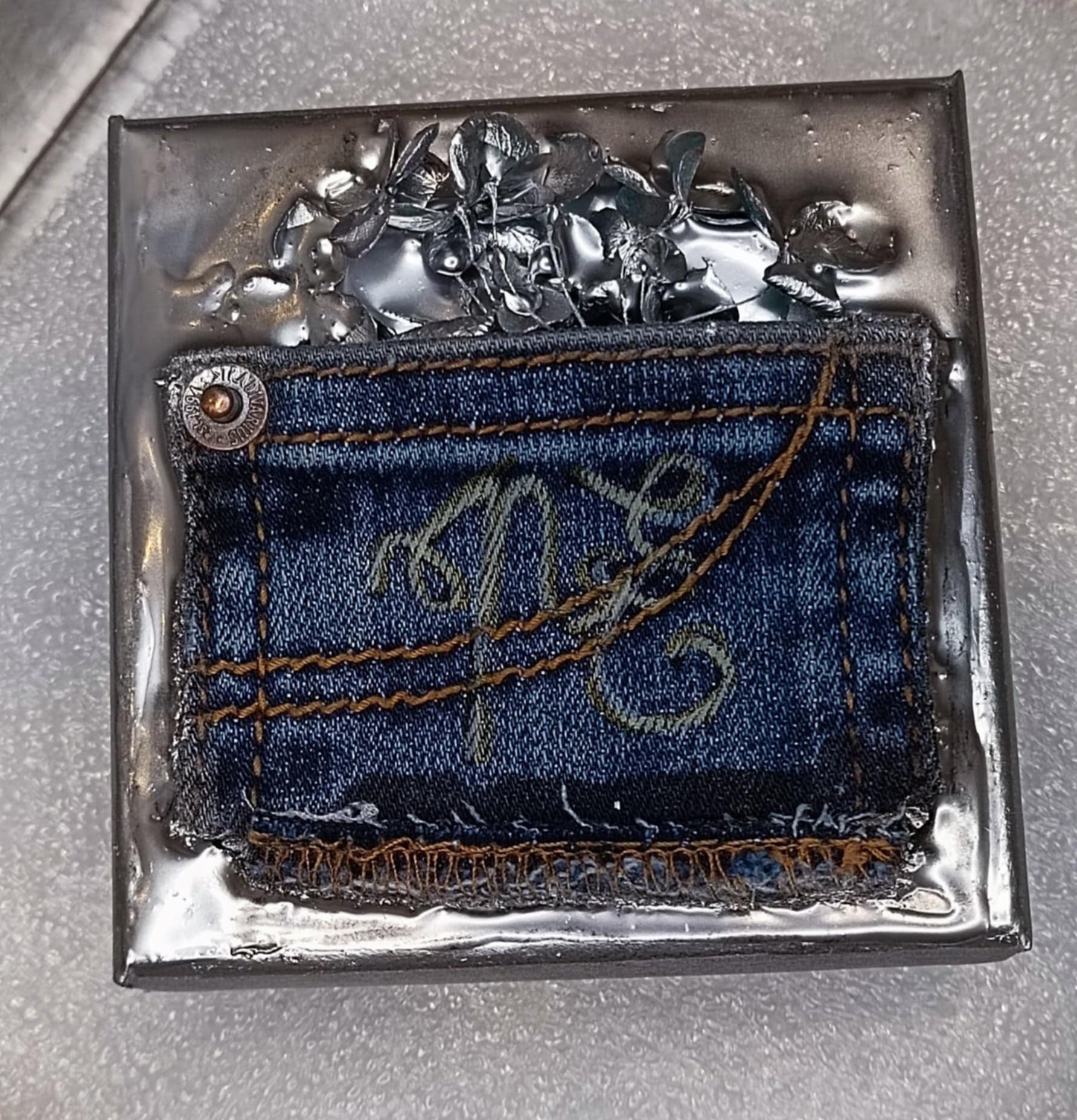In deze oorbellen komt hergebruik tot leven in een elegant ontwerp. De ronde jeansbasis brengt een stoere, unieke touch, terwijl de blauwe kralen en facet geslepen jade groene accenten een speelse verfijning toevoegen. De oud zilveren details met zirkonen vangen het licht op subtiele wijze, en het zilverkleurige haakje zorgt voor een tijdloze afwerking.