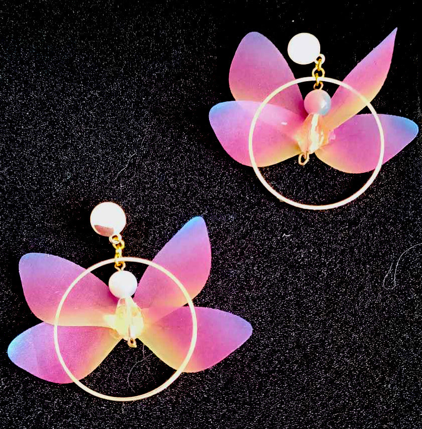*Dromerige Vlinder Oorbellen — Goud & Iriserend Roze*
