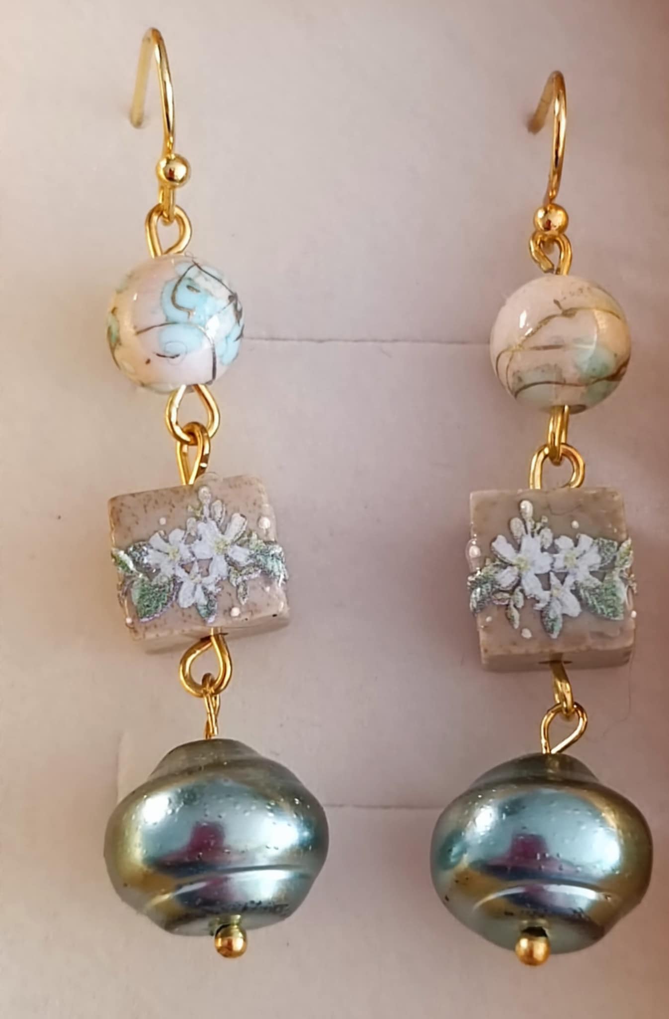 Deze oorbellen uit de Tantann-collectie combineren de warmte van goudkleurig roestvrij staal met de verfijning van groene parels en natuursteen. De delicate bloemen symboliseren groei en verbondenheid, terwijl de natuursteen een stukje aardse energie met zich meedraagt. Elke parel uit deze collectie draagt een geschiedenis, verweven met liefde en herinneringen.